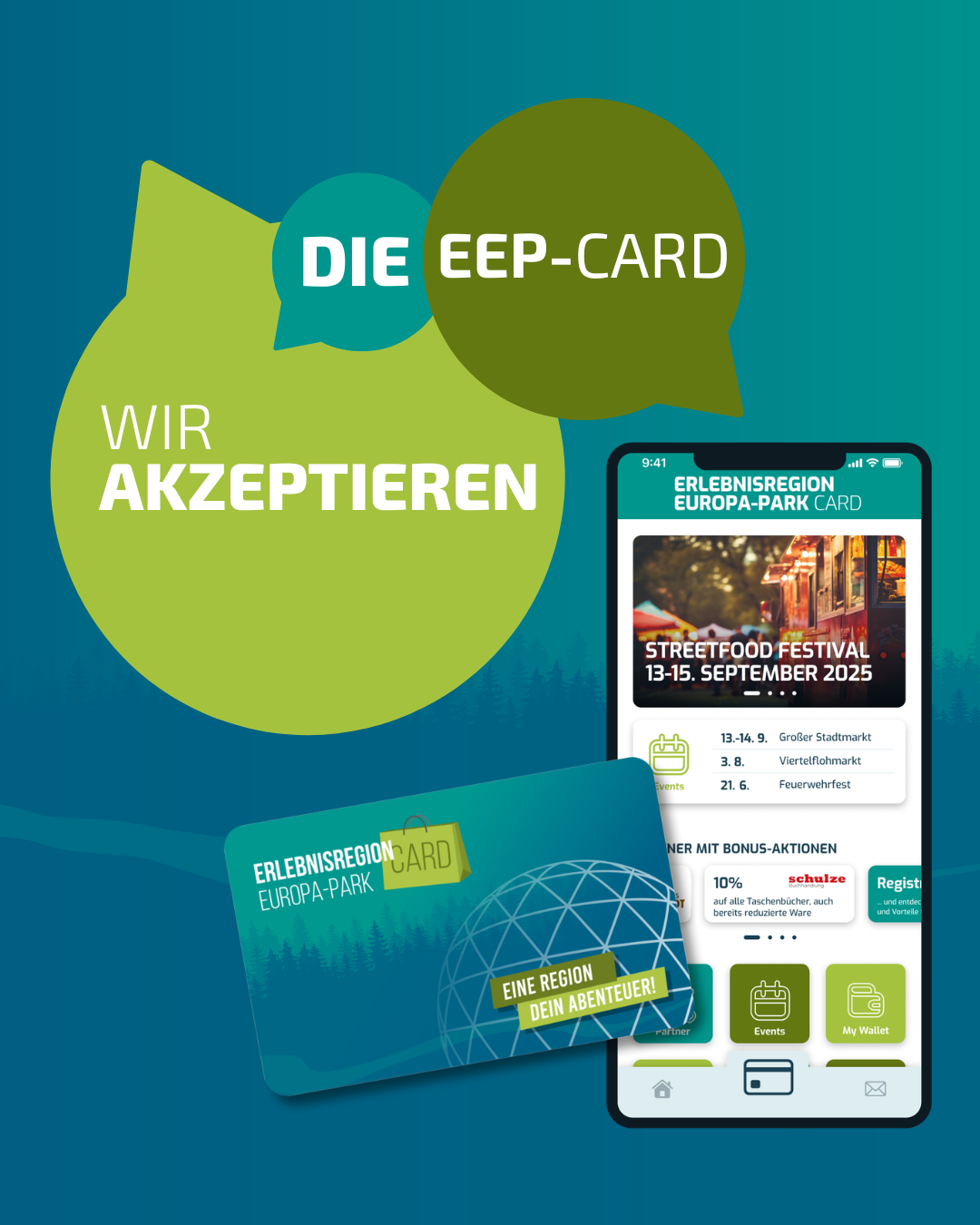 Hier finden Sie eine Auswahl von Grafiken zur freien Verwendung für alle Akzeptanzparter der Erlebnisregion Europa-Park CARD.